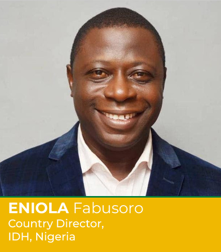 Eniola Fabusoro is an accomplished development professional with over 26 years of experience in agricultural value chains, research, community development, and project management. He currently serves as the Country Director for IDH in Nigeria, where he leads strategic programs that embed sustainability in supply chains and foster inclusive business models for SMEs and smallholder farmers. His work drives the transformation of African food systems, creating jobs, improving food security, and promoting local sourcing for multinational companies and FMCGs.